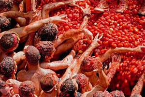 Get stuck in with the celebration of near-death experiences as you get carried in an open coffin at the Festival of Santa Marta de Ribarteme. Start a tomato fight at the world's largest tomato fight at the La Tomatina festival.