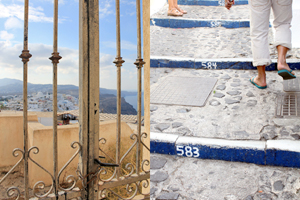 Can't get enough of the walking? Climb up the 588 steps from the Old Port to Fira — make it as leisurely as you like — and enjoy the pretty sights, including the donkeys, along the way. And once in Fira, why not explore this capital city as well? Despite, or perhaps because of its small size, the city packs a wallop when it comes to breathtaking vistas, beautiful churches, and picturesque street scenes replete with cobblestone pavements and quaint nooks, shophouses, and cafes.
